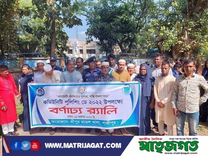 শামীম আল মামুন স্টাফ রিপোর্টারঃ-কমিউনিটি পুলিশের মূলমন্ত্র শান্তি শৃঙ্খলা সর্বত্র” এই শ্লোগানে গাজীপুরের শ্রীপুরে নানা আয়োজনে পালিত হয়েছে কমিউনিটি পুলিশিং ডে। দিবসটি উপলক্ষে বিভিন্নস্থানে শোভাযাত্রা ও আলোচনা সভার আয়োজন করা হয়।