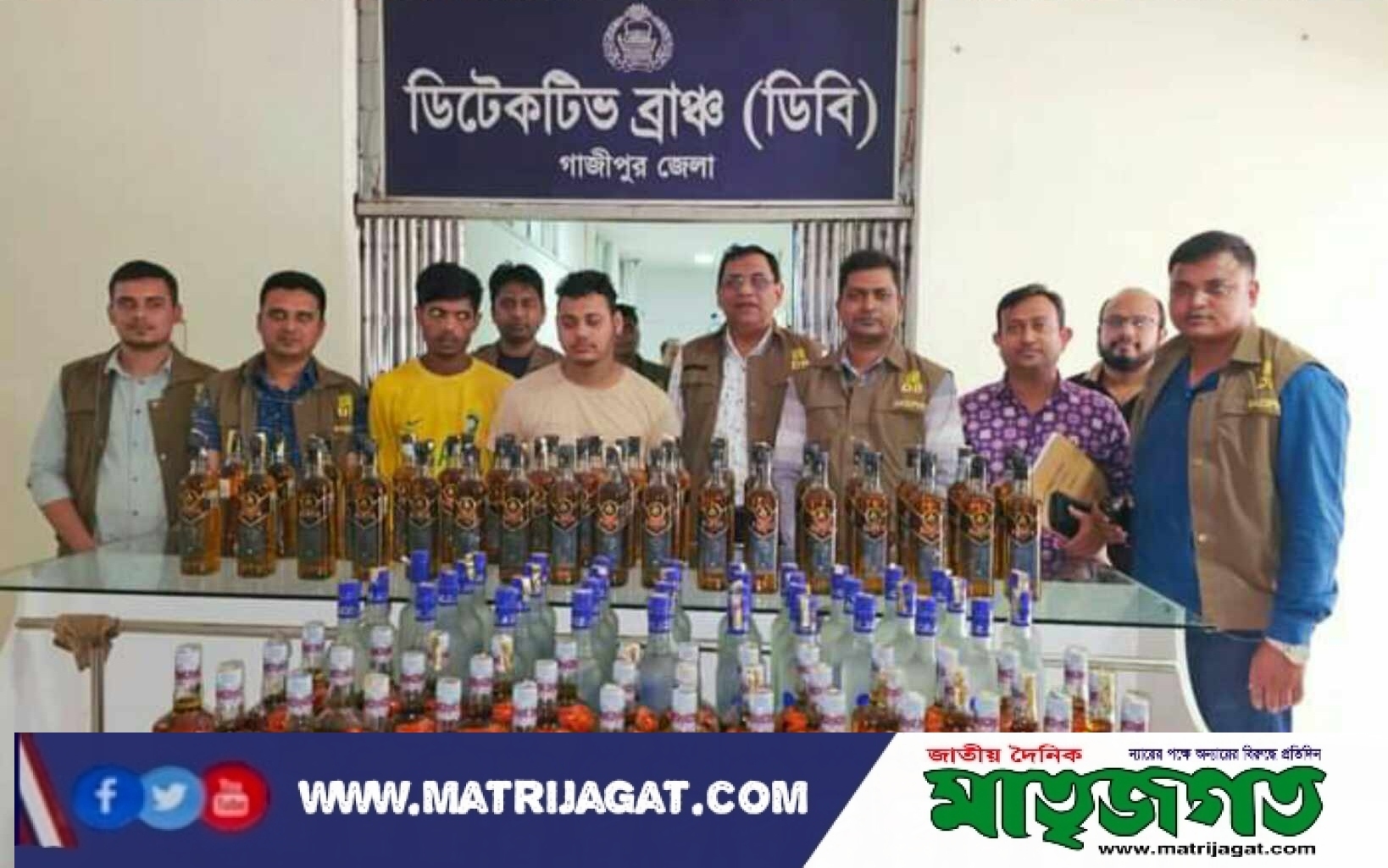 শ্রীপুরে, বিপুলসংখ্যক বিদেশি মদের বোতলসহ ২ জনকে আটক