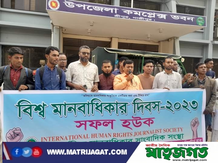 (১০'শে ডিসেম্বর ২০২৩) রবিবার সকাল ১১:ঘটিকা'য়, উক্ত বর্ণাঢ্য র্যালী অনুষ্ঠানে উপস্থিত ছিলেন, আন্তর্জাতিক মানবাধিকার সাংবাদিক সংস্থা শ্রীপুর উপজেলা শাখা'র সভাপতি আবুল কাসেম ও সাধারণ সম্পাদক সাইফুল ইসলাম।