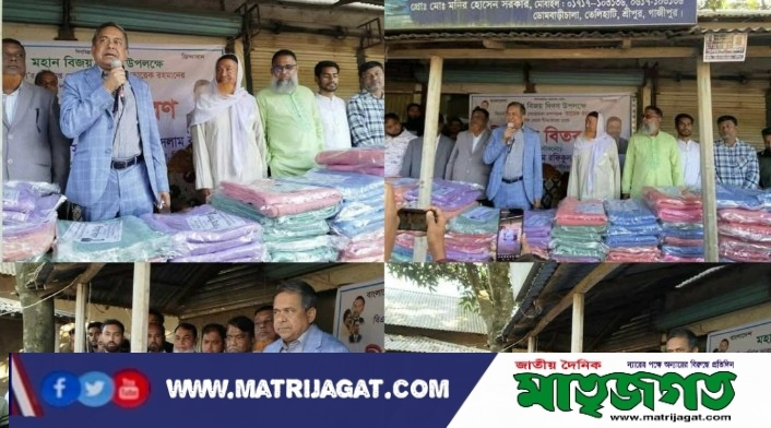 শেখ মোঃ হুমায়ুন কবির, চিফ রিপোর্টার: গাজীপুরের শ্রীপুরে, মহান বিজয় দিবস উপলক্ষে বিএনপির ভারপ্রাপ্ত চেয়ারম্যান তারেক রহমানের নির্দেশনায় বিএনপির কেন্দ্রীয় কমিটির সহস্বাস্থ্য বিষয়ক সম্পাদক অধ্যাপক ডাঃ এস এম রফিকুল ইসলাম বাচ্চু, শ্রীপুর উপজেলার তেলিহাটি ইউনিয়নে প্রায় ৩০০'শ অসহায়, দরিদ্র শীতার্ত পরিবারের মাঝে কম্বল বিতরণ করেছেন।