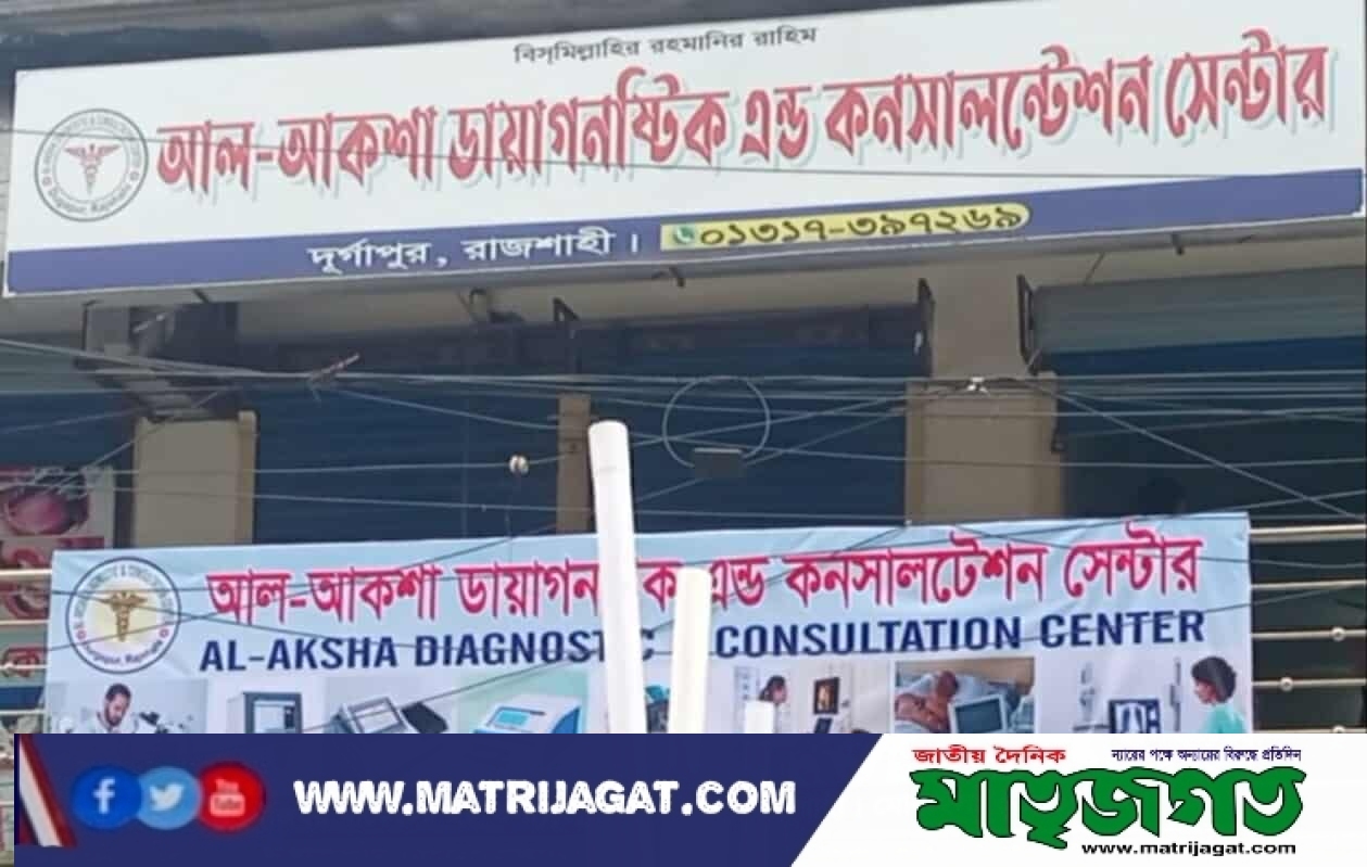 রাজশাহীর দূর্গাপুরে অবশেষে বন্ধের নির্দেশ দেওয়া হয়েছে ভুয়া আল আকশা ডায়াগনস্টিক সেন্টার। অনুমোদন ছাড়াই দীর্ঘদিন ধরে প্রতিষ্ঠানটি চালু থাকলেও প্রশাসনের নজর এড়িয়ে গিয়েছিল। তবে গণমাধ্যমে বিষয়টি প্রকাশের পরপরই নড়েচড়ে বসে উপজেলা প্রশাসন ও স্বাস্থ্য বিভাগ।