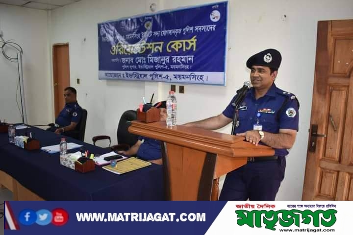 ইন্ডাস্ট্রিয়াল পুলিশ হেডকোয়ার্টার্স, উত্তরা, ঢাকা এর নির্দেশনায় ইন্ডাস্ট্রিয়াল পুলিশ-৫, ময়মনসিংহ জোনের আয়োজনে অদ্য ইং ২৮/০৭/২০২২ খ্রিঃ তারিখ, দুপুর ১৩.৩০ ঘটিকায় ইন্ডাস্ট্রিয়াল পুলিশ, ময়মনসিংহ জোনের পুলিশ সুপার, জনাব মোঃ মিজানুর রহমান মহোদয়ের সভাপতিত্বে সদ্য যোগদানকৃত ২৫জন কনস্টেবল (টিআরসি)'দের ওরিয়েন্টেশন কোর্সের সমাপনী অনুষ্ঠান অনুষ্ঠিত হয়। উল্লেখ্য যে, অত্র ইউনিটে সদ্য নতুন যোগদানকৃত ২৫জন কনস্টেবল (টিআরসি)'দের ০৬দিন মেয়াদী ওরিয়েন্টেশন কোর্স শেষে প্যারেড পরিক্ষা, আইন ও বিধি লিখিত, ব্যবহারিক, মৌখিক পরীক্ষার মাধ্যমে মূল্যায়ণ করা হয়। পুলিশ সুপার মহোদয়ের নির্দেশে দায়িত্বপ্রাপ্ত কর্মকর্তাগণ উল্লিখিত বিষয়ে পরিক্ষার মাধ্যমে মূল্যায়ণ করেন।