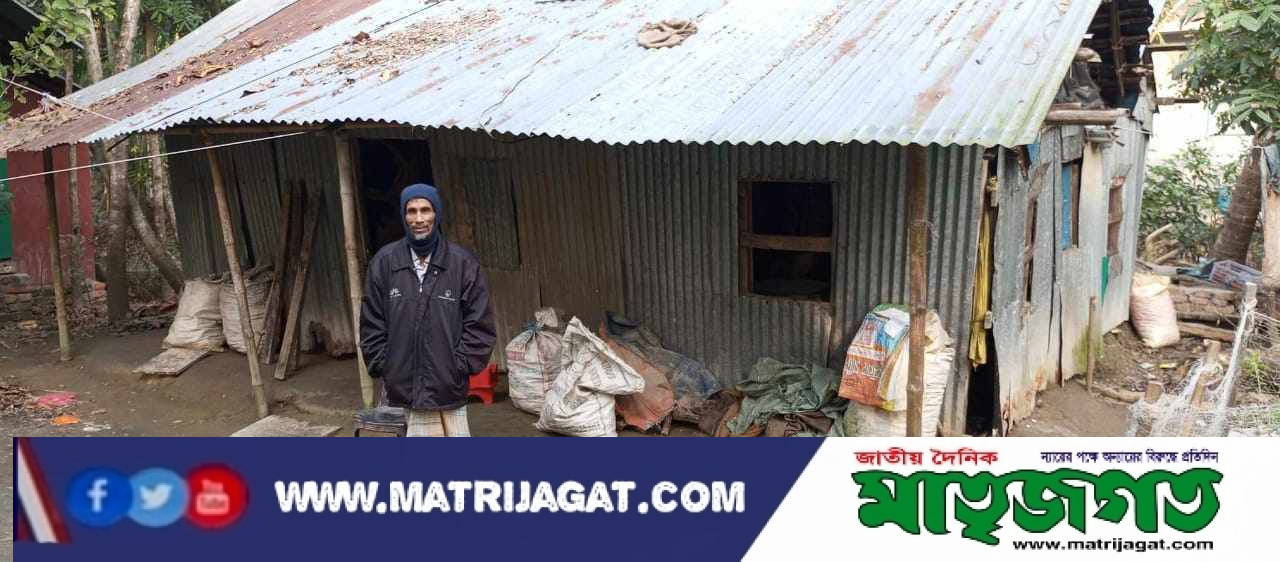 রিয়াদুল মামুন সোহাগঃ খড় আর ভাঙাচোরা কিছু টিনে জোড়াতালি দেওয়া ঘরের বেড়া।মরিচা ধরা টিনের চালে পলিথিনের ছাউনি।জীর্ণ এ ঘরে স্ত্রী রোকেয়া বেগম(৪৫) ,মেয়ে নুর নাহার পলি(২২),মহিমা(১৪)কে নিয়ে বসবাস করেন গফুর(৫২)।বৃষ্টি এলেই দুর্ভোগ বাড়ে।টিনের ছিদ্র দিয়ে পানি পড়ে ভেসে যায় ঘর। একটু কোনাও ফাঁকা পাওয়া যায় না যেখানে শুয়ে ঘুমাবেন তারা।সেখানেই যায় শুধু পানি পড়ে।