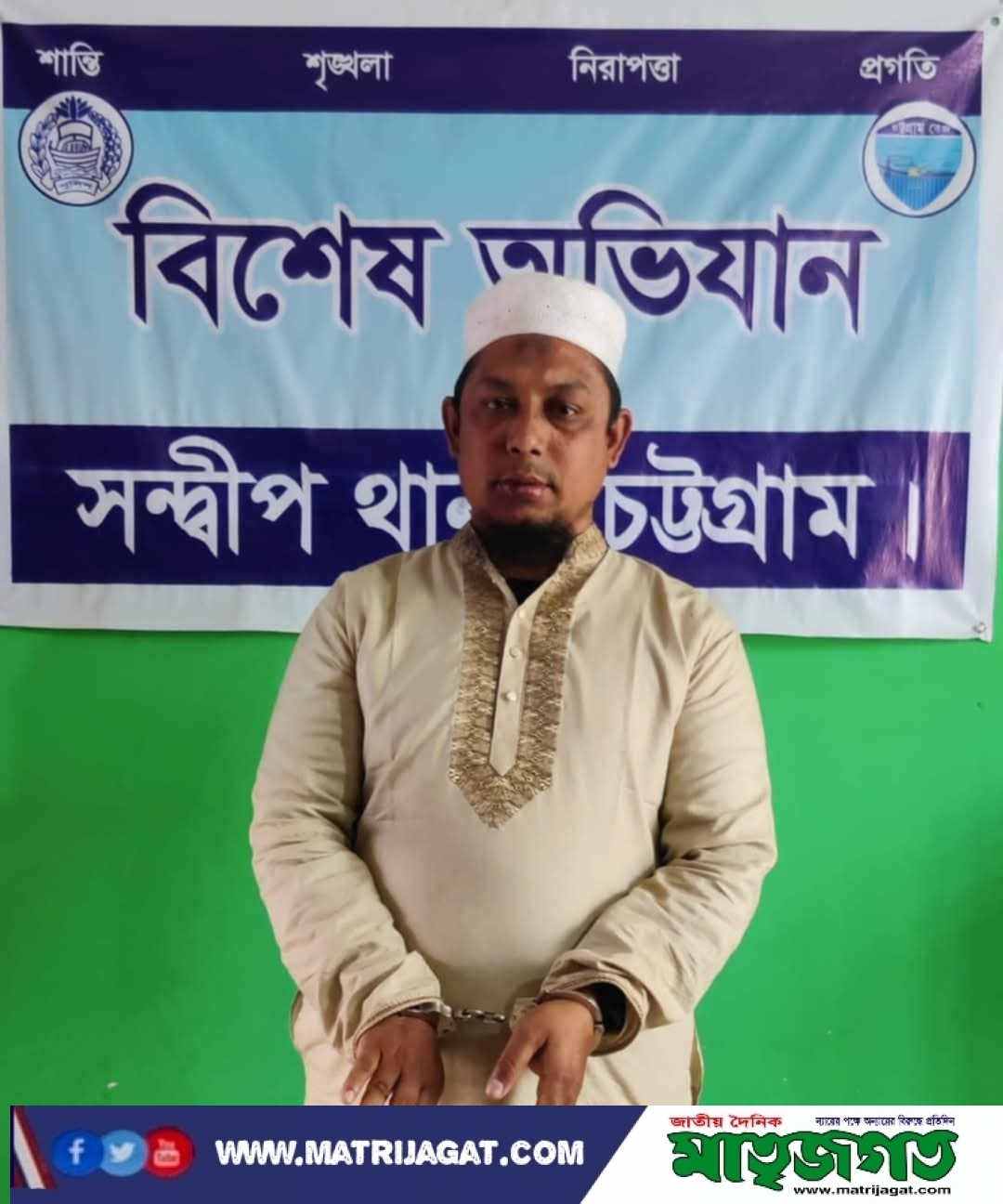 সন্দ্বীপে পুলিশ পরিচয়ে চাঁদাবাজির অভিযোগে খাদেম হুজুর আটক