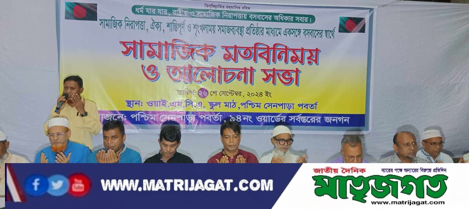 সমাজে শান্তি প্রতিষ্ঠায় ৯৪ নং ওয়ার্ডের সর্বস্তরের জনগণ কর্তৃক সামাজিক মতবিনিময় ও আলোচনা সভা