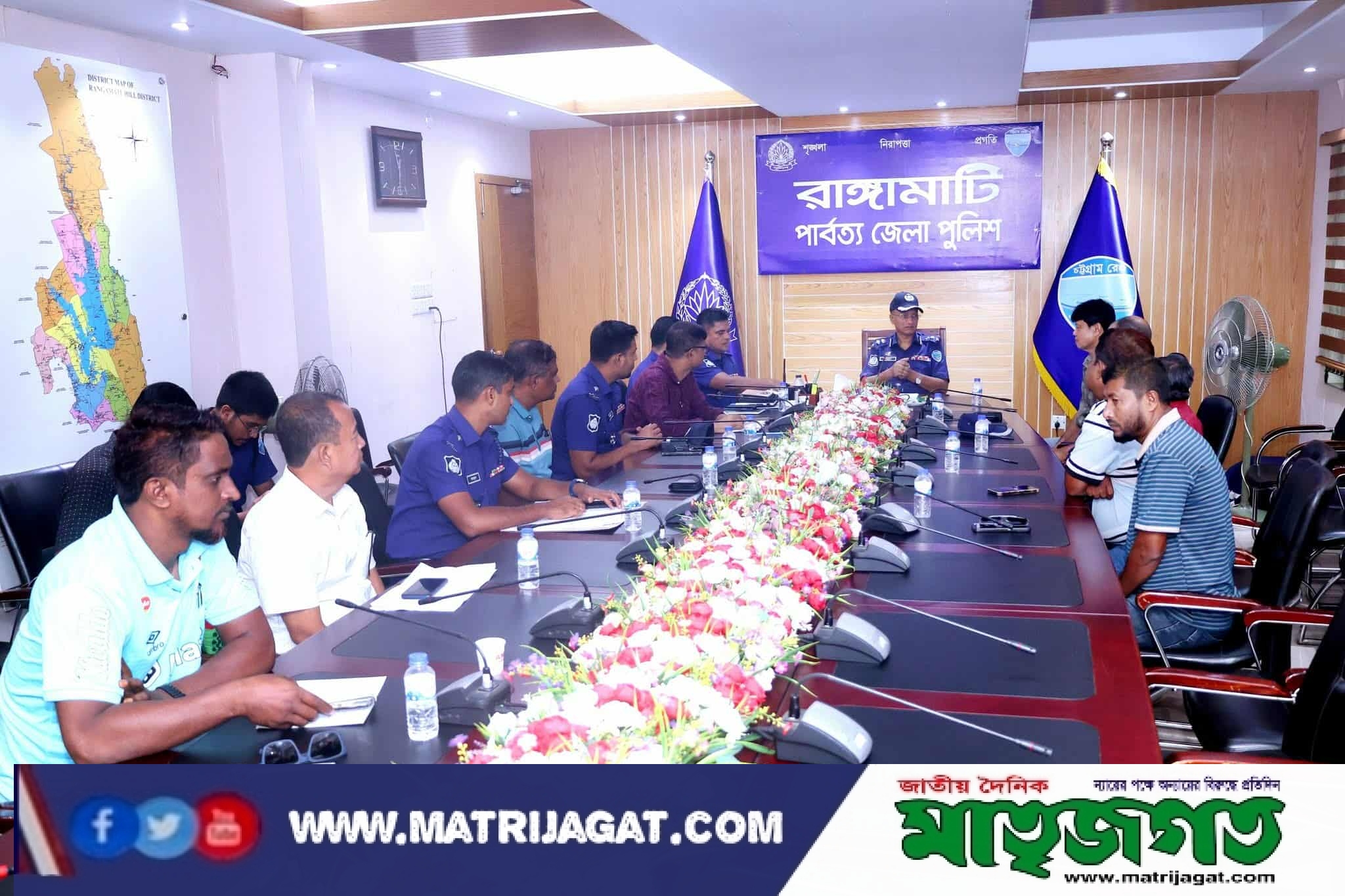 সম্প্রীতি ও সৌহার্দ্য বজায় রাখতে রাঙামাটি জেলা পুলিশের উদ্যোগে আগামী ০২ ও ০৩ নভেম্বর অনুষ্ঠিত হতে যাচ্ছে মিনি ম্যারাথন, ফুটবল ও হ্যান্ডবল প্রতিযোগিতা। এ উপলক্ষে আজ (২৮ অক্টোবর) রাঙামাটি পার্বত্য জেলা পুলিশ সুপারের কার্যালয়ের কনফারেন্স রুমে প্রস্তুতিমূলক আলোচনা সভা অনুষ্ঠিত হয়।