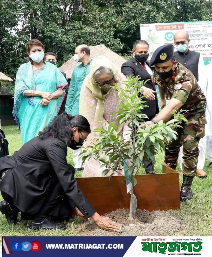 গণভবন চত্বরে ছাতিম সফেদা ও হরিতকির চারা রোপণ করলেন প্রধানমন্ত্রী শেখ হাসিনা, আর এর মাধ্যমেই বৃক্ষরোপণ কর্মসূচি উদ্বোধন করেছেন তিনি,