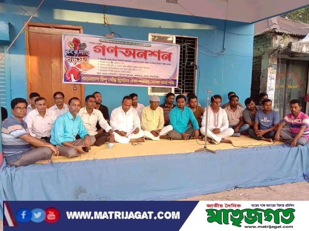 বাংলাদেশ হিন্দু বৌদ্ধ খ্রিস্টান ঐক্য পরিষদ সিরাজগঞ্জ জেলা সলঙ্গা থানা শাখার উদ্যোগে এই গণ অনশন-গণ অবস্থান ও বিক্ষোভ কর্মসূচি পালিত হয়।