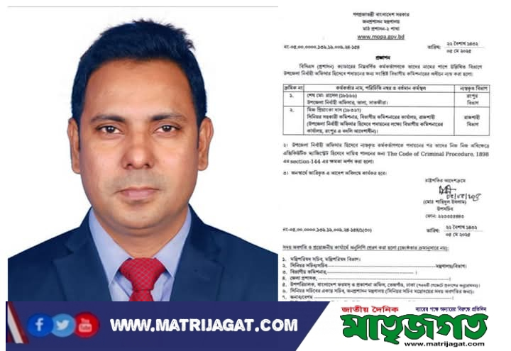 সোমবার (৫ মে) জনপ্রশাসন মন্ত্রণালয়ের মাঠ প্রশাসন-২ শাখা থেকে জারি করা এক প্রজ্ঞাপনে এ তথ্য জানানো হয়।