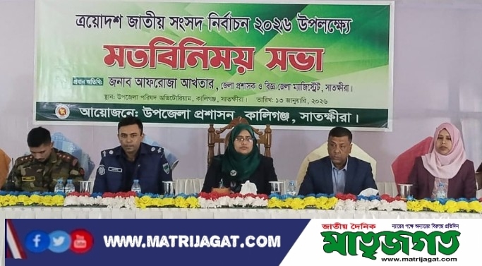 আসন্ন ত্রয়োদশ জাতীয় সংসদ নির্বাচন-২০২৬ কে সামনে রেখে সুষ্ঠু, অবাধ ও নিরপেক্ষ নির্বাচনের লক্ষ্যে সাতক্ষীরার কালিগঞ্জে মতবিনিময় সভা অনুষ্ঠিত হয়েছে।