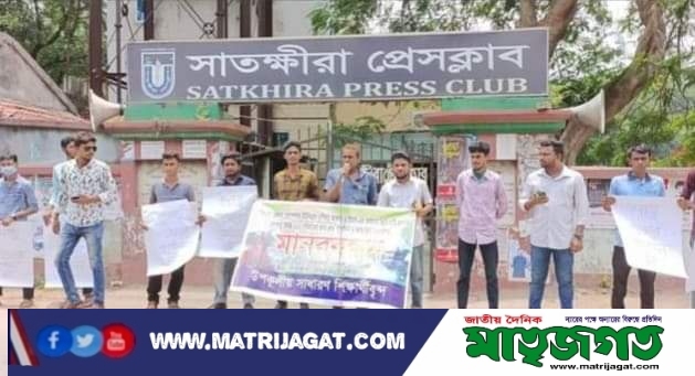 সাতক্ষীরায় জলবায়ু উদ্বাস্তুদের পুনর্বাসনের দাবিতে উপকূলবর্তী শিক্ষার্থীদের মানববন্ধন