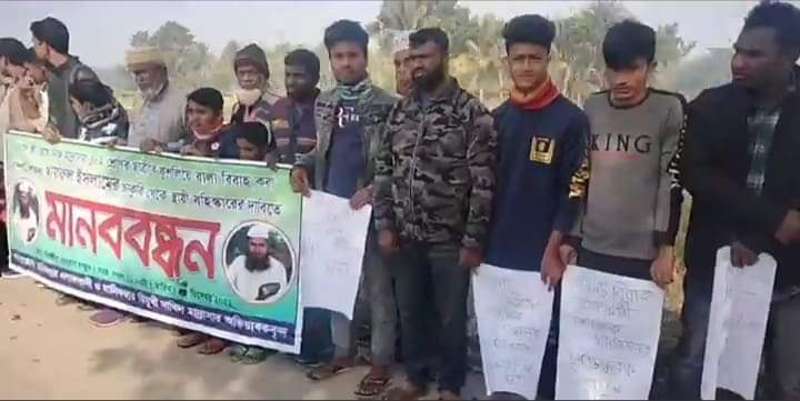 সাতক্ষীরায় মাদ্রাসা ছাত্রীকে বাল্যবিয়ে করা শিক্ষকের বিচার দাবিতে মানববন্ধন।