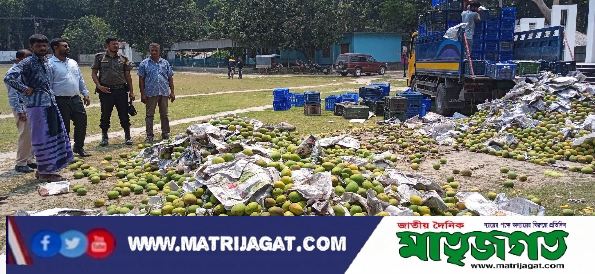 সাতক্ষীরা দেবহাটায় ভ্রাম্যমান আদালতে দশ টন অপরিপক্ক আম জব্দ, জনসম্মুখে বিনষ্ট