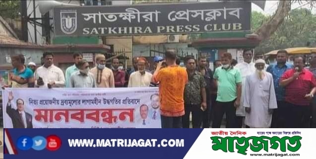 বুধবার বেলা ১১টায় সাতক্ষীরা প্রেসক্লাবের সামনে জেলা জাতীয় পার্টির সভাপতি শেখ আজহার হোসেনের সভাপতিত্বে ও সদর উপজেলা জাতীয় পার্টির সাধারণ সম্পাদক আনোয়ার জাহিদ তপনের পরিচালনায় মানববন্ধনে বক্তব্য রাখেন জাপা নেতা শাখাওয়াতুল করিম পিটুল, শেখ আব্দুস সাদেক, আকরাম হোসেন খান বাপ্পী, জেলা ছাত্র সমাজ সভাপতি পৌর কাউন্সিলর কায়সারুজ্জামান হিমেল, আকরাম খান বাপ্পি প্রমুখ।