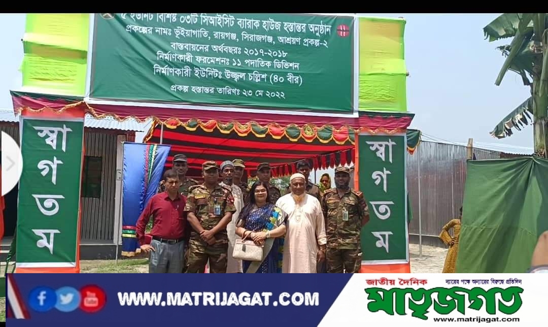 সিরাজগঞ্জের রায়গঞ্জে আশ্রয়ন প্রকল্পের ব্যারাক হস্তান্তর করলো বাংলাদেশ সেনাবাহিনী