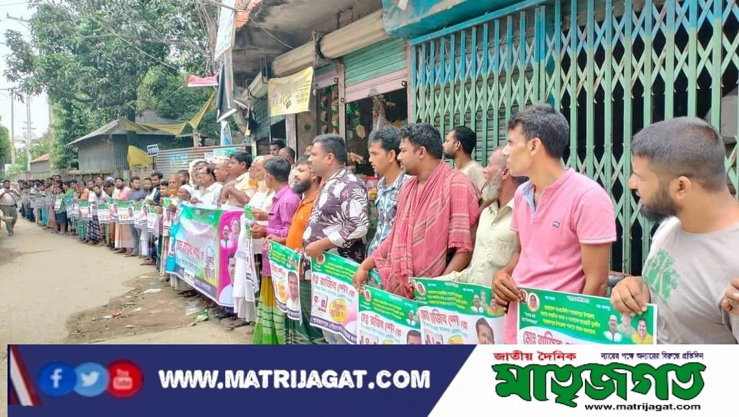শনিবার (১৩ আগষ্ট) সকালে পৌর এলাকার আফজালের মোড়ে অনুষ্ঠিত এ মানববন্ধন শেষে অনুষ্ঠিত সংক্ষিপ্ত পথসভায় অন্যান্যের মধ্যে বক্তব্য রাখেন, ২নং ওয়ার্ড আওয়ামী লীগের সভাপতি নুরুল ইসলাম,উপজেলা ছাত্রলীগের সাবেক সাধারন সম্পাদক ইসলাম আলী, সাবেক পৌর কাউন্সিলর আব্দুর রহিম, কৃষকলীগ সদস্য আব্দুল ব্যাপারী, সাবেক এজিএস আব্দুস সোবহান, মাসুদ রানা প্রমুখ।