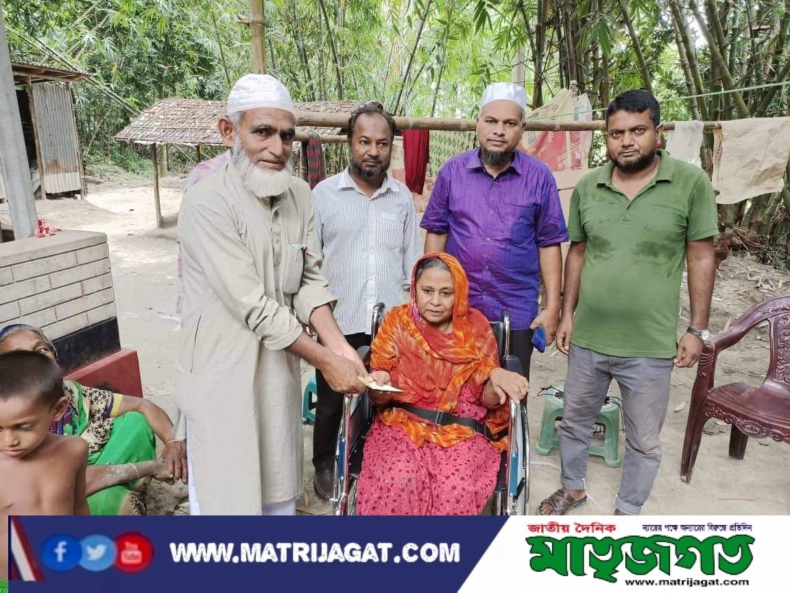 সিরাজগঞ্জের সলঙ্গায় হুইল চেয়ার পেয়ে ফাতেমা খালার চোখে -মুখে আনন্দের হাসি