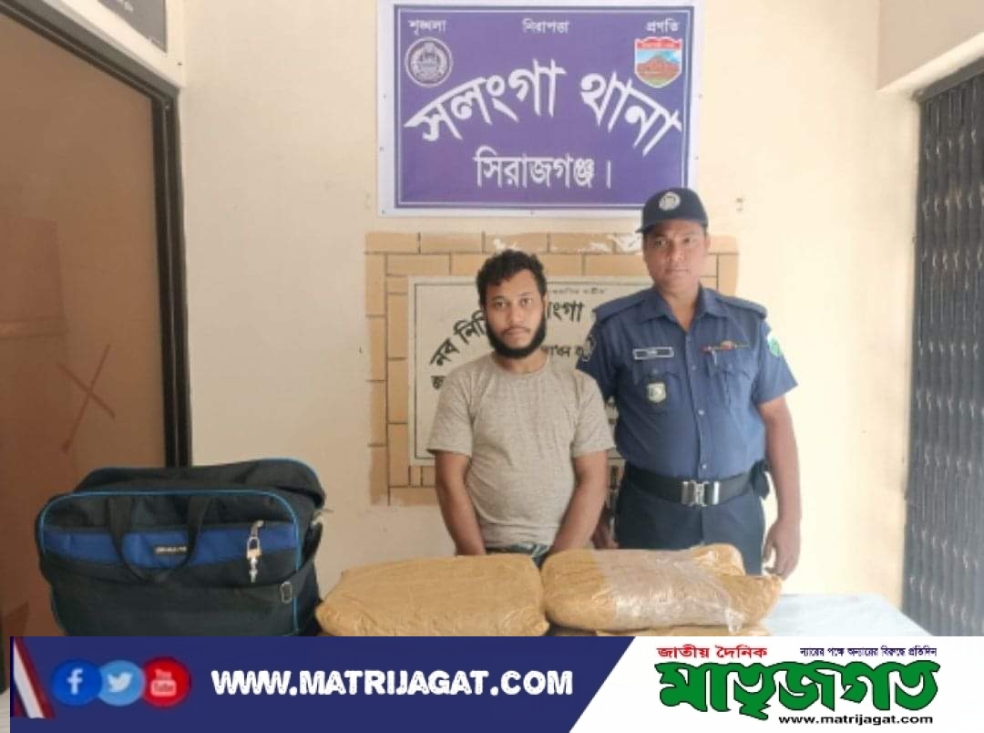 সিরাজগঞ্জের সলঙ্গায় ৮ কেজি গাঁজাসহ রাজু (৩০) নামে এক মাদক ব্যবসায়ীকে আটক করেছে পুলিশ। শুক্রবার ভোর পৌনে ৫টার দিকে সলঙ্গা থানার হাটিকুমরুল গোলচত্ত¡রের পুর্বপাশে সাখাওয়াত এইচ মেমোরিয়াল হাসপাতালের সামনে থেকে তাকে আটক করা হয়।