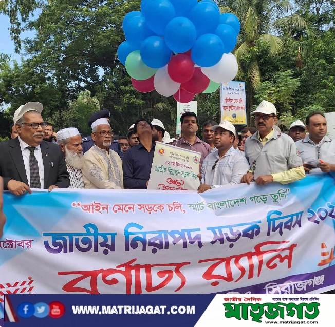 সিরাজগঞ্জে জাতীয় নিরাপদ সড়ক দিবস উদযাপন উপলক্ষ্যে র‍্যালি প্রদর্শন ও আলোচনা সভা অনুষ্ঠিত