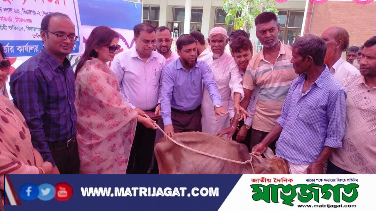 সিরাজগঞ্জে জেলেদের বিকল্প কর্মসংস্থান সৃষ্টিতে উপকরণ বকনা বাছুর বিতরণ