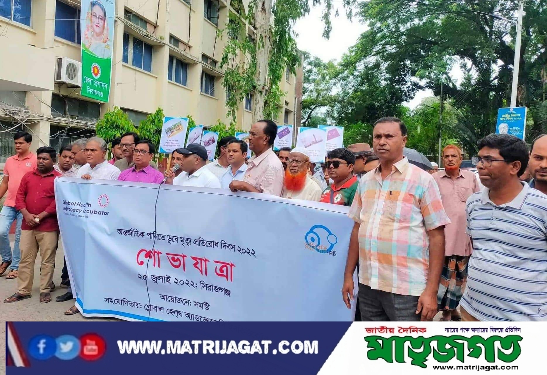 বিশ্ব পানিতে ডুবে মৃত্যু- প্রতিরোধ দিবস-২০২২ উপলক্ষে- সিরাজগঞ্জে গণমাধ্যম ও উন্নয়ন যোগাযোগ সংগঠন "সমষ্টি" আয়োজিত র্যালি অনুষ্ঠিত হয়েছে।