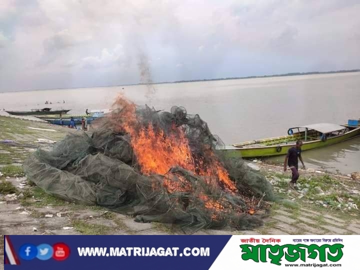 সিরাজগঞ্জে যমুনা নদীতে অবৈধ ভাবে বিভিন্ন স্থানে পেতে রাখা ১১৮ টি চায়না দুয়ারী জাল জব্দ করে তা আগুনে পুড়ে ধ্বংস করা হয়েছে।