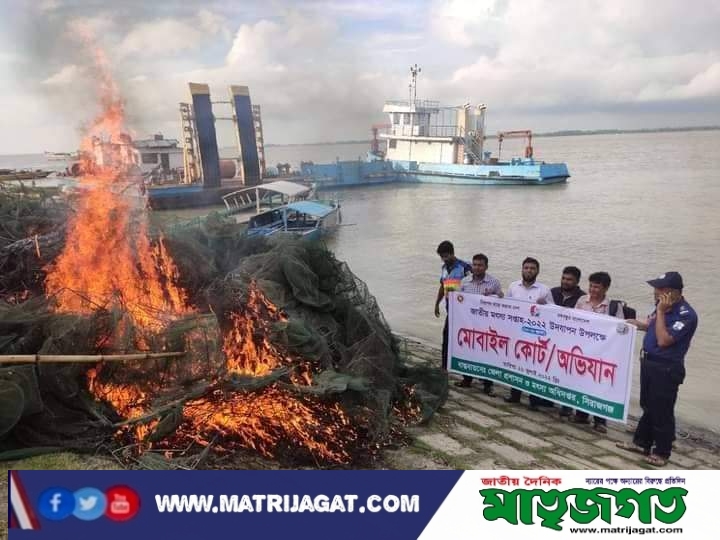 জাতীয় মৎস্য সপ্তাহ-২০২২ এর ৪র্থ দিনে সিরাজগঞ্জ সদর অংশে যমুনা নদীতে সাড়াশী অভিযান চালিয়ে ১৬৮ টি অবৈধ চায়না দুয়ারী চায়না জাল ওকিছু কারেন্ট জাল আটক করে পুড়িয়ে ধ্বংস করা হয়েছে।