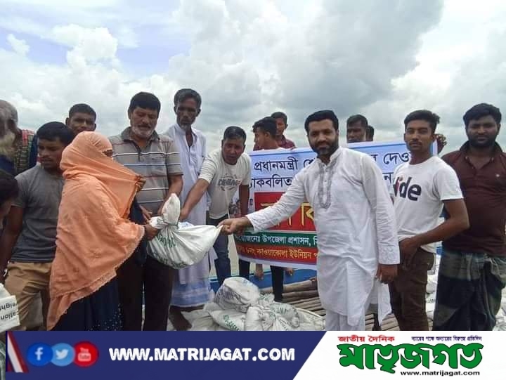 সিরাজগঞ্জ যমুনানদীর দূর্গম চরাঞ্চল কাওয়াকোলা ইউনিয়নে বন্যাকবলিতদের মাঝে ত্রাণ বিতরণ