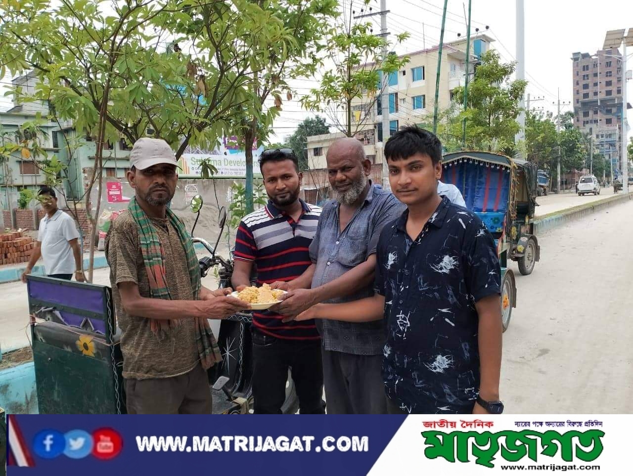 দোয়া মাহফিল শেষে পথচারী ও রিকশা চালকের মাঝে ৫০০ প্যাকেট খাবার বিতরণ করেন তারা।