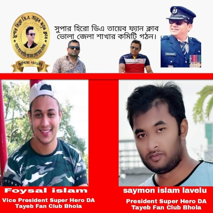 সুপার হিরো ডিএ তায়েব ফ্যান ক্লাবের সভাপতি রুহুল আমিন কিরন বলেন, ডিএ তায়েব ফ্যান ক্লাবের পক্ষ থেকে ভোলা জেলা কমিটির "সভাপতি" সাইমুন ইসলাম লাভলু এবং সাধারণ সম্পাদক, ফয়সাল ইসলাম কে জানাই আন্তরিক শুভেচ্ছা ও অভিনন্দন।
