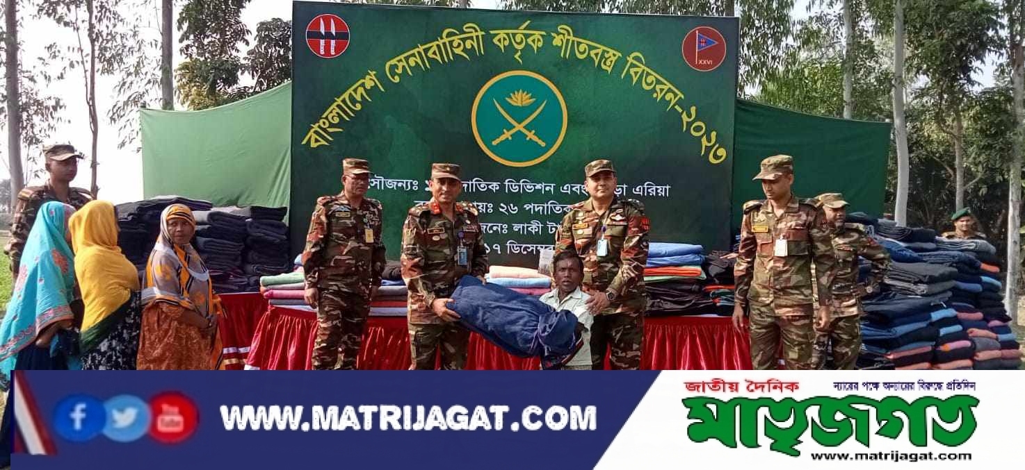 সেনাবাহিনী কর্তৃক জানানো হয়, নওগাঁ জেলার বদলগাছী উপজেলার মিঠাপুর,আধাইপুর এবং মথরাপুর ইউনিয়নের বিভিন্ন এলাকার শীতার্ত মানুষের জন্য ১১ পদাতিক ডিভিশন এর ২৬ পদাতিক ব্রিগেডের অধীনস্থ ৭ ইস্ট বেংগল রেজিমেন্ট কর্তৃক শীতার্ত মানুষের মাঝে ৫৭৫টি কম্বল বিতরণসকরা হয়।সন্মানিত সেনাবাহিনী প্রধানের নির্দেশনায় শীতার্ত মানুষের মাঝে শীতবস্ত্র বিতরণ ছাড়াও নানাবিধ জনসেবামূলক কাজ করছে বাংলাদেশ সেনাবাহিনী।