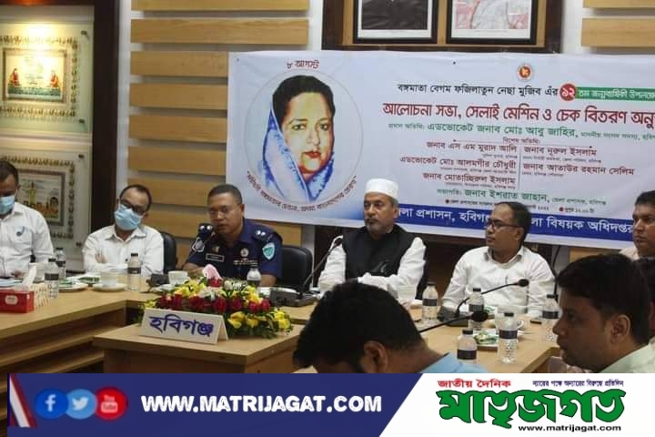 সোমবার (০৮ আগস্ট হবিগঞ্জ জেলায় বঙ্গমাতা শেখ ফজিলাতুন নেছা মুজিব এঁর ৯২ তম জন্মবার্ষিকী উপলক্ষে আলোচনা সভা, সেলাই মেশিন ও চেক বিতরণ অনুষ্ঠিত হয়।