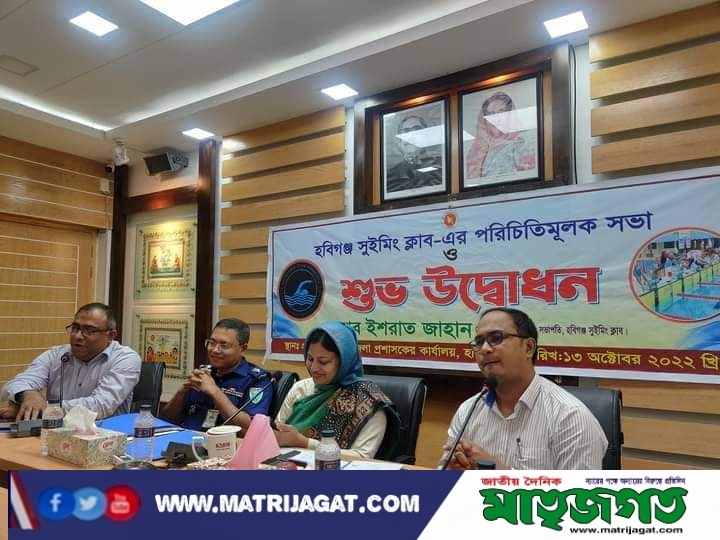 জেলার শিশুদের সাঁতার প্রশিক্ষণের সুযোগ সৃষ্টির লক্ষ্যে আজ জেলা প্রশাসক, হবিগঞ্জ এর সম্মেলন কক্ষে হবিগঞ্জ সুইমিং ক্লাব এর পরিচিতিমূলক সভা ও শুভ উদ্বোধন ঘোষণা করা হয়। উক্ত সভায় সভাপতিত্ব করেন হবিগঞ্জ জেলার সম্মানিত জেলা প্রশাসক জনাব ইশরাত জাহান। এছাড়াও উপস্থিত ছিলেন সম্মানিত পুলিশ সুপার, সিভিল সার্জন, অতিরিক্ত জেলা প্রশাসক (রাজস্ব), অতিরিক্ত জেলা প্রশাসক (শিক্ষা ও আইসিটি), উপজেলা নির্বাহী অফিসার (হবিগঞ্জ সদর), জেলা শিক্ষা অফিসার, জেলা প্রাথমিক শিক্ষা অফিসার, বিভিন্ন শিক্ষা প্রতিষ্ঠানের শিক্ষক শিক্ষিকাবৃন্দ, গণমাধ্যমকর্মী, ক্ষুদে সাঁতারুসহ অন্যান্য সুধীজন।
