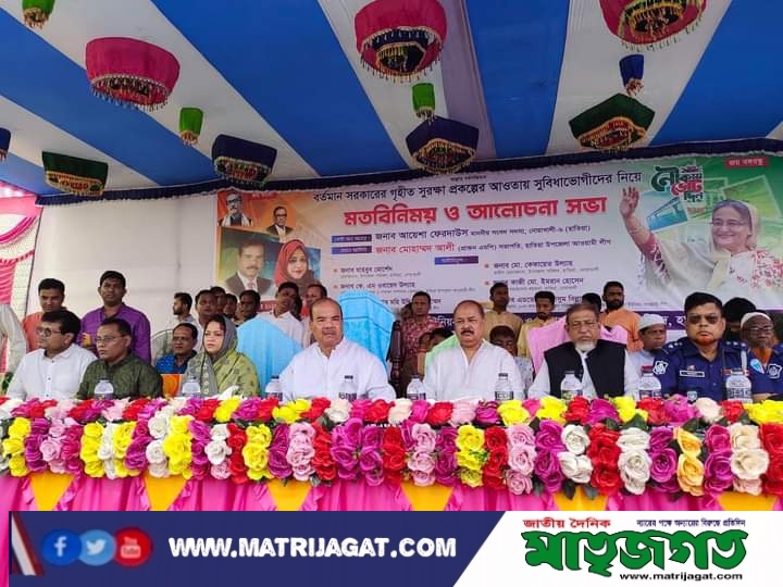 দ্বাদশ জাতীয় সংসদ নির্বাচনকে সামনে রেখে নোয়াখালীর দ্বীপ উপজেলা হাতিয়ায় আওয়ামীলীগ সরকারের গৃহীত সুরক্ষা প্রকল্পের আওতায় সুবিধাভোগীদের নিয়ে মতবিনিময় ও আলোচনা সভা অনুষ্ঠিত হয়েছে। শনিবার(২১ অক্টোবর) সকালে উপজেলার জাহাজমারা উচ্চ বিদ্যালয় মাঠে এ আলোচনা সভা অনুষ্ঠিত হয়। সভায় সরকারে প্রতি আনুষ্ঠানিক কৃতজ্ঞতা প্রকাশ করেছেন বিভিন্ন প্রকল্পভুক্ত সুবিধাভোগীরা। গেস্ট অব অনার স্থানীয় সংসদ সদস্য আয়েশা ফেরদাউস এমপি'র উপস্থিতিতে বিশেষ অতিথি হিসেবে উপস্থিত ছিলেন প্রাক্তন সংসদ সদস্য ও হাতিয়া উপজেলা আওয়ামীলীগের সভাপতি মোহাম্মদ আলী। বিশেষ অতিথি হিসেবে বক্তব্য রাখেন, উপজেলা পরিষদ চেয়ারম্যান মাহবুব মুর্শেদ লিটন, হাতিয়া পৌরসভা মেয়র কে এম ওবায়েদ উল্লাহ,বিপ্লব। উপজেলা সমাজসেবা কর্মকর্তা কাজী ইমরান হোসেন, জাহাজমারা ইউনিয়ন পরিষদ চেয়ারম্যান এডভোকেট মাছুম বিল্লা, উপজেলা আওয়ামীলীগের সদস্য আশীক আলি অমি, উপজেলা যুবলীগের আহবায়ক শাহ আজিজুর রহমান মিরাজ, জেলা পরিষদ সদস্য মহিউদ্দিন মহিন প্রমুখ। এসময় উপস্থিত ছিলেন হাতিয়া সার্কেলের সহকারি পুলিশ সুপার আমান উল্যা, থানা ভারপ্রাপ্ত কর্মকর্তা(ওসি) জিসান উদ্দিনসহ বিভিন্ন ইউনিয়নের চেয়ারম্যান ও সরকারি কর্মকর্তারা। এতে সভাপতিত্ব করেন জাহাজমারা ইউনিয়ন আ'লীগ সভাপতি মহিউদ্দিন আহমদ। বক্তারা আওয়ামীলীগ সরকারের উন্নয়নের সফলতা, বয়স্ক ভাতা, বিধবা ভাতা, মুজিব শতবর্ষ উপলক্ষে হাজার হাজার ভূমিহীনদের মাঝে গৃহ প্রদান, মসজিদ-মাদ্রাসা, মন্দির ও সার্বিক উন্নয়নের দিক তুলে ধরেন। আওয়ামীলীগ'কে নৌকা মার্কায় ভোট দিয়ে পুনরায় ক্ষমতায় আনার আহবান জানান। আনুষ্ঠানিক কৃতজ্ঞতা প্রকাশ করেছেন বিভিন্ন প্রকল্পের মাধ্যমে ভাতা পাওয়া সুবিধাভোগীরা। জয়নাল আবেদিন। উপবৃত্তি পাওয়া জাহাজমারা উচ্চ বিদ্যালয়ের ৬ষ্ঠ শ্রেণীর ছাত্রী মাহজাবীন সেতু ও ন্যায্য মূল্যে পন্য ক্রয় করার সূযোগ পাওয়া এক নং ওয়ার্ডের বাসিন্ধা বৃদ্ধ নুরুল ইসলাম সহ অনেকে। জাহাজমারা ইউনিয়ন আওয়ামীলীগ ও ইউনিয়ন পরিষদ কর্তৃক আয়োজিত এ সভায় কয়েক হাজার নারী-পুরুষ অংশ নেন। সভা শেষে তাদের জন্য মধ্যাহ্ন ভোজের ব্যবস্থা করা হয়।উল্লেখ্য,হাতিয়ার ১১টি ইউনিয়নের মধ্যে জাহাজমারা সবচেয়ে বড় ও অধিক জনবসতি পূর্ণ ইউনিয়ন। এখানে সরকারের সুরক্ষা প্রকল্পের আওতায় বয়স্ক, বিধবা, প্রতিবন্ধী, শিক্ষা উপবৃত্তি সহ বিভিন্ন ভাবে ৪ হাজার ৫শত ৪৭জন মাসিক ভাতা পেয়ে থাকেন। এত সরকারে প্রতিবছর এই ইউনিয়নে ব্যয় হয় ৪কোটি ৮৯ লাখ ৭২ হাজার ৬শত টাকা।