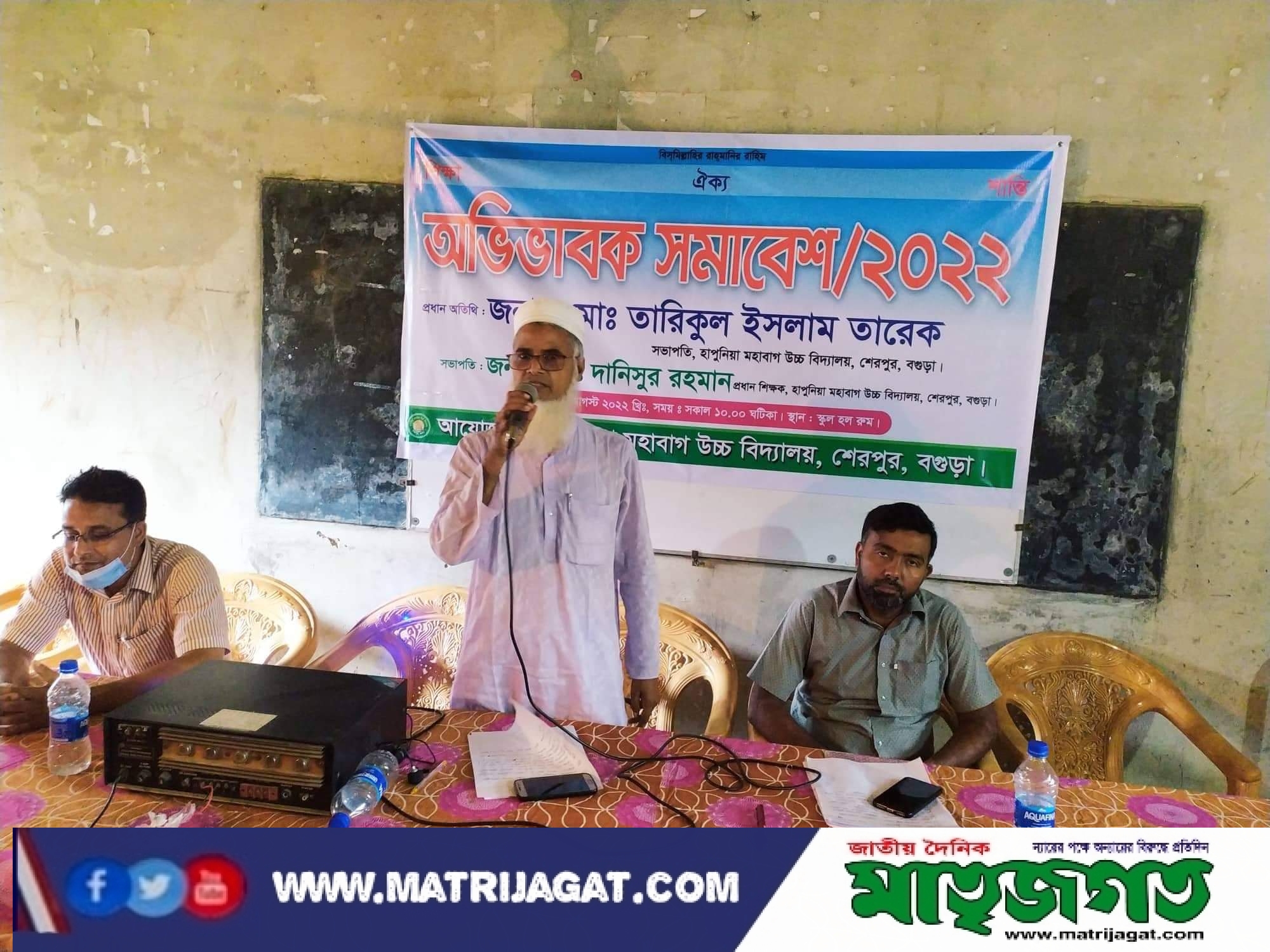 নিজস্ব প্রতিবেদকঃ-বগুড়া জেলার শেরপুর উপজেলাধীন সুনাম ধন্য হাপুনিয়া মহাবাগ উচ্চ বিদ্যালয় হল রুমে।