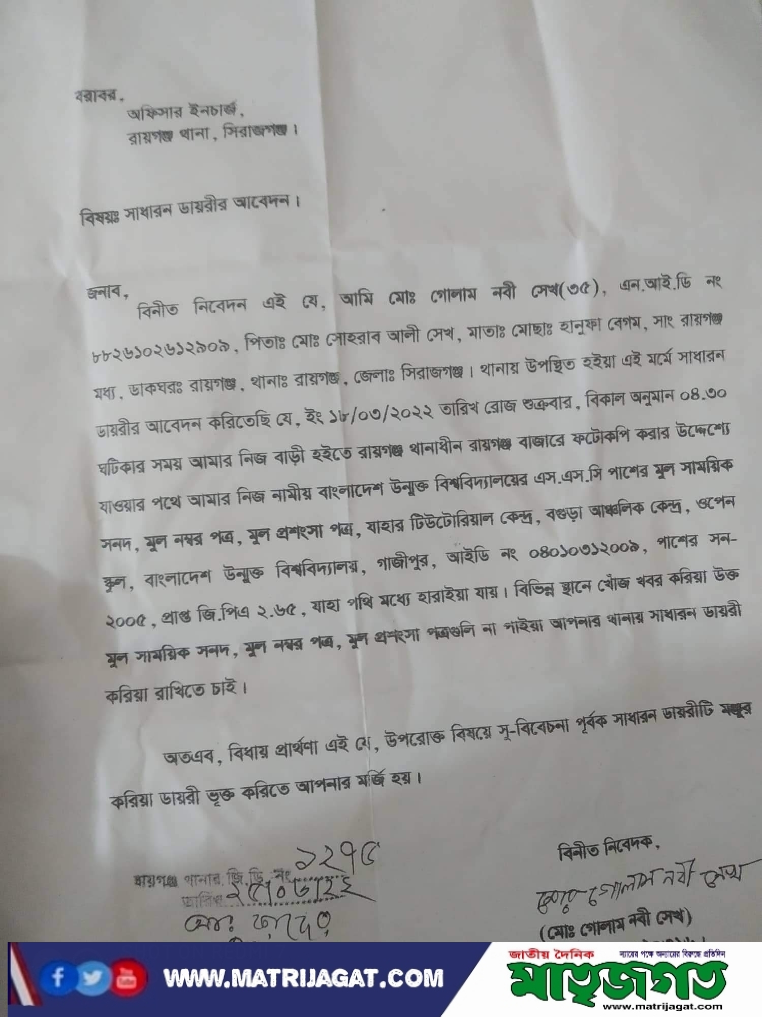 হারিয়েছে আমার নিজ নামীয় বাংলাদেশ উন্মণক্ত বিশ্ববিদ্যালয়ের এস.এস.সি পাশের মুল সাময়িক সনদ,মুল নম্বর পত্র,মুল প্রসংসা পত্র,যাহার টিউটোরিয়াল কেন্দ্র,বগুড়া
