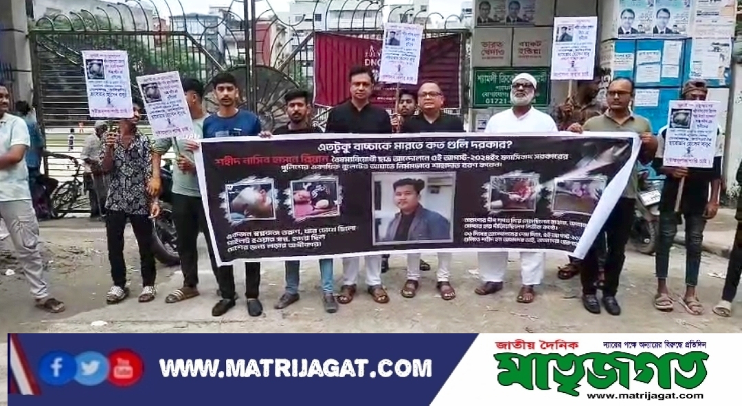২০২৪ সালের ছাত্র গণঅভ্যুত্থানে নিহত শহীদ নাসির হাসান রিয়ানের প্রথম মৃত্যুবার্ষিকী উপলক্ষে রাজধানীতে মানববন্ধন আয়োজন করা হয়েছে।