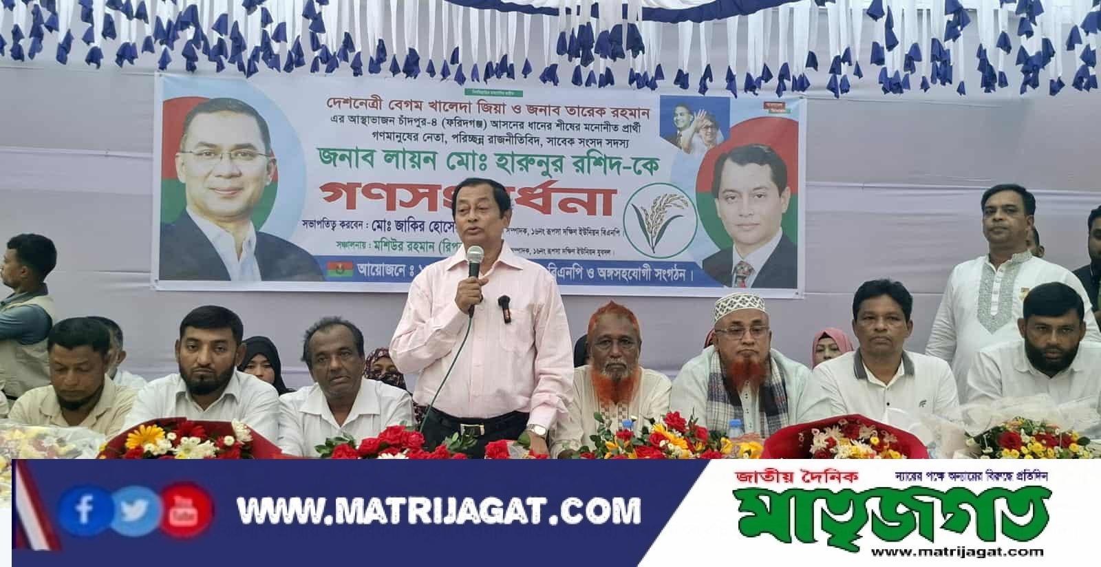 সাখাওয়াত ভ্রাম্যমান প্রতিনিধি ফরিদগঞ্জ (চাঁদপুর) : বিএনপির ৩১ দফার আলোকে দেশ পরিচালিত হলে দেশের সব সমস্যার স্থায়ী সমাধান সম্ভব বলে মন্তব্য করেছেন বিএনপির জাতীয় নির্বাহী কমিটির ব্যাংকিং ও রাজস্ব বিষয়ক সম্পাদক ও ত্রয়োদশ জাতীয় সংসদ নির্বাচনে চাঁদপুর-৪ (ফরিদগঞ্জ) আসনের বিএনপির মনোনীত প্রার্থী সাবেক সংসদ সদস্য লায়ন মো. হারুনুর রশিদ। মঙ্গলবার (১১ নভেম্বর) বিকেলে উপজেলার রূপসা দক্ষিণ ইউনিয়নের মান্দারখিল মাদ্রাসা মাঠে ইউনিয়ন বিএনপি ও অঙ্গসংগঠনের আয়োজনে আয়োজিত গণসংবর্ধনা অনুষ্ঠানে প্রধান অতিথির বক্তব্যে তিনি এসব কথা বলেন। লায়ন হারুনুর রশিদ বলেন, “এই সংবর্ধনা ও ভালোবাসা আমাকে ঋণী করেছে। আমি প্রতিদান দেবো কর্মের মাধ্যমে। দল আমাকে আপনাদের ভালোবাসার কারণেই মনোনয়ন দিয়েছে। এখন আমাদের দায়িত্ব আগামী নির্বাচনে ধানের শীষের বিজয় নিশ্চিত করা।” অনুষ্ঠানে সভাপতিত্ব করেন ইউনিয়ন বিএনপির সাবেক সাধারণ সম্পাদক জাকির হোসেন খান এবং পরিচালনা করেন যুবদল নেতা মশিউর রহমান রিপন। বিশেষ অতিথি ছিলেন প্রবাসী চাঁদপুর জেলা বিএনপির সভাপতি শরিফ খান, উপজেলা বিএনপির সাবেক সাধারণ সম্পাদক আজিজুর রহমান আজিজ, যুবদল নেতা নাছির উদ্দিন পাটওয়ারী, ফজলুর রহমান, সোহেল খান প্রমুখ। এসময় বিএনপি, যুবদল, ছাত্রদল, স্বেচ্ছাসেবক দল, মহিলা দলসহ বিভিন্ন অঙ্গসংগঠনের নেতাকর্মী ও হাজারো এলাকাবাসী উপস্থিত ছিলেন।