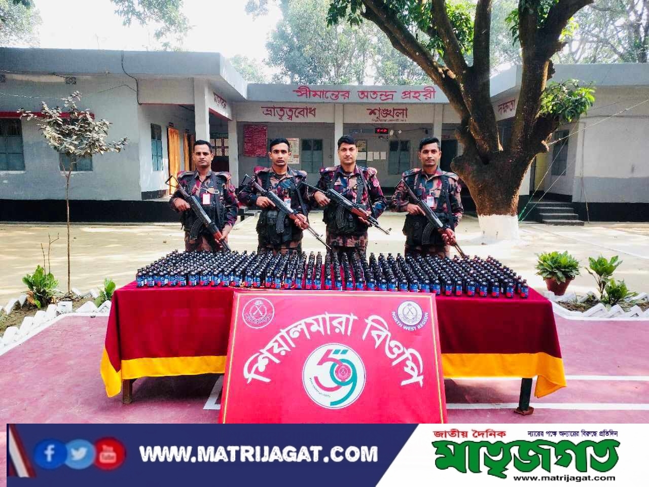 ৫৯ বিজিবির অভিযানে শিয়ালমারা সীমান্তে ৩৯৪ বোতল ফেন্সিডিল আটক