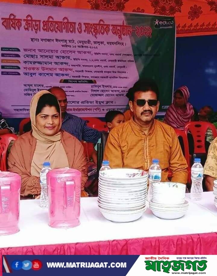 গত (১৫ অক্টোবর) শনিবার বার দিনব্যাপী ঈদগাহ মাঠে এ অনুষ্ঠানটি অনুষ্ঠিত হয়। মেদুয়ারী ইউনিয়নের ১,২,৩, ইউপি সদস্য সভাপতি মোছাঃসালমা আক্তার সভাপতিত্বে অনুষ্ঠানে প্রধান অতিথি হিসেবে উপস্থিত ছিলেন জানাব মোঃআনোয়ার হোসেন আকন্দ ইউ-পি-সদস্য ৩ নং ওয়ার্ড । বিশেষ অতিথি হিসেবে উপস্থিত ছিলেন কামরুজ্জামান আকন্দ সভাপতি বাংলাদেশের যুবলীগ ৩ নং ওয়ার্ড. শওকত ওসমান আকন্দ সহকারী শিক্ষক লোহা বই উচ্চ বিদ্যালয়। জনাব মোঃ আবুল কাসেম আকন্দ বগাজান সরকারি প্রাথমিক বিদ্যালয় ,আঃ মালেক সভাপতি বগাজান পুরাতন মসজিদ, জনাব মমিনুল ইসলাম সহকারী শিক্ষক বগাজান সরকারি প্রাথমিক বিদ্যালয় , মোঃ সজিব মিয়া ছাএলীগ নেতা ৩ নং ওয়ার্ড রাকিবুল ইসলাম বিল্লাল হোসেন আকন্দ তোফাজ্জল হোসেন আকন্দ । অনুষ্ঠানটির সার্বিক ব্যবস্থাপনায় আয়োজনে আলোর প্রতিভা ইয়ুথ ক্লাব।, দৌড় প্রতিযোগিতা, দীর্ঘ লম্ফ, বিস্কুট দৌড়, দড়ি লাফ, পাতিল ভাঙ্গা, বর্ষা-চাকতি-গোলক নিক্ষেপ, আবৃত্তি, নৃত্য ও চমকপ্রদ ইভেন্ট যেমন খুশি তেমন সাজসহ বিভিন্ন প্রতিযোগিতায় অংশগ্রহণ করে। অনুষ্ঠান শেষে বিজয়ীদের মাঝে পুরস্কার বিতরণ করা হয়।