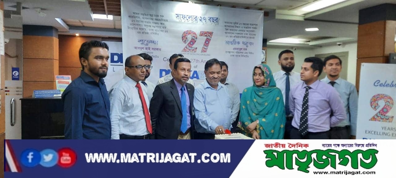 ঢাকা ব্যাংক হালিশহর শাখায় ২৭তম প্রতিষ্ঠাবার্ষিকী উদযাপন ঢাকা ব্যাংকের ২৭তম প্রতিষ্ঠাবার্ষিকী উপলক্ষে চট্টগ্রামের হালিশহর শাখায় এক বর্ণাঢ্য অনুষ্ঠানের আয়োজন করা হয়েছে।