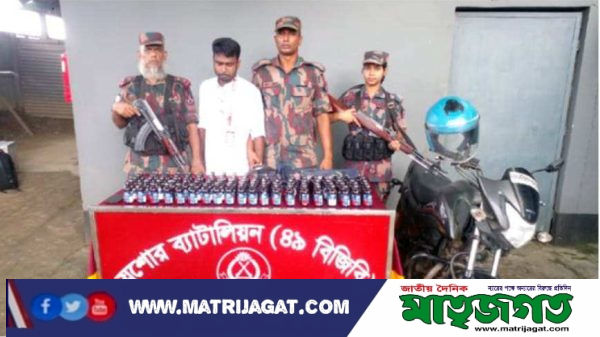 মোঃ মিন্টু শেখ ক্রাইম রিপোর্টারঃ যশোরের বেনাপোল সীমান্তে অভিযান চালিয়ে ১০০ বোতল ফেন্সিডিলসহ শেখ মফিজুর রহমান (২৯) নামে এক ছাত্রলীগ নেতাকে আটক করেছে ৪৯ বর্ডার গার্ড বাংলাদেশ (বিজিবি) সদস্যরা। সে