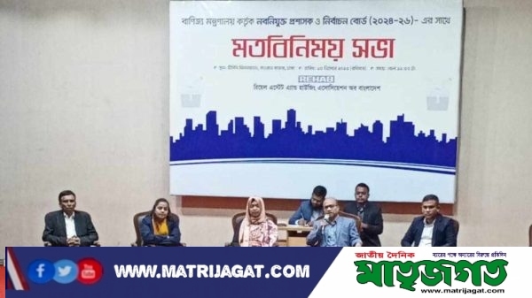 সুমন খান: বাণিজ্য মন্ত্রণালয় কর্তৃক নব-নিযুক্ত প্রশাসক ও নির্বাচন বোর্ড (২০২৪-২৬) এর সাথে রিহ্যাব সদস্যদের মতবিনিময় সভা অনুষ্ঠিত হয়েছে। অদ্য ১০ ডিসেম্বর ২০২৩ তারিখ ,গতকাল রবিবার দুপুরে কাওরান বাজারস্থ ট্রেডিং